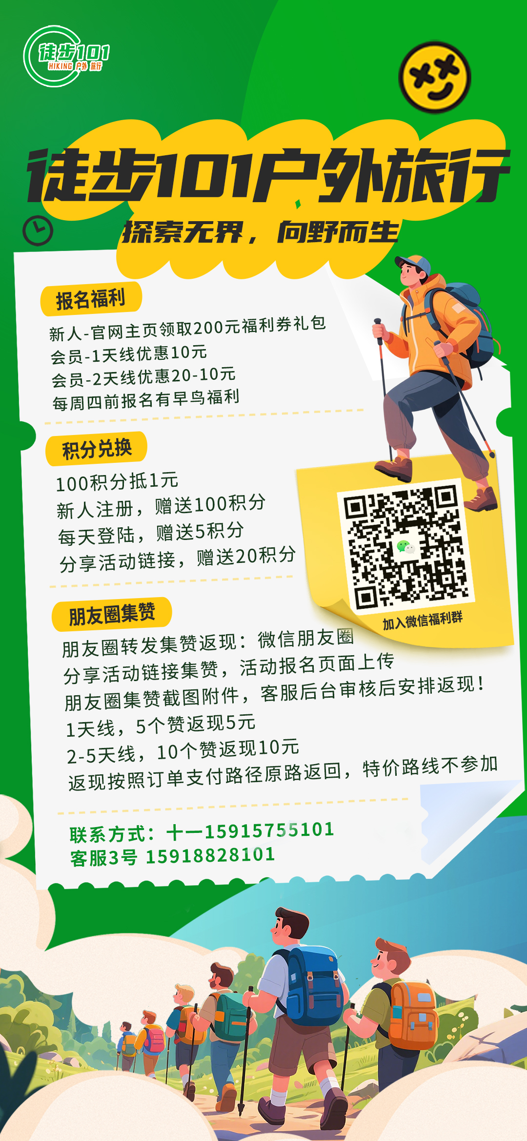 【适合人群】10-55周岁身体健康人士,平常有户外经验,无心脑血管等特殊疾病等。(如爬山起步时有不适,领队会劝退或指引下撤游玩吃鸡),不接受孕妇