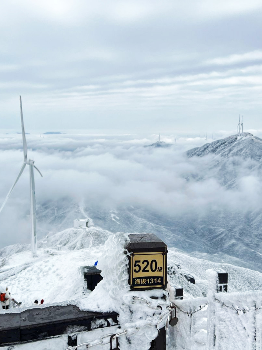 一次打卡广东与湖南交界点云冰山,一半雾凇,一半雪。