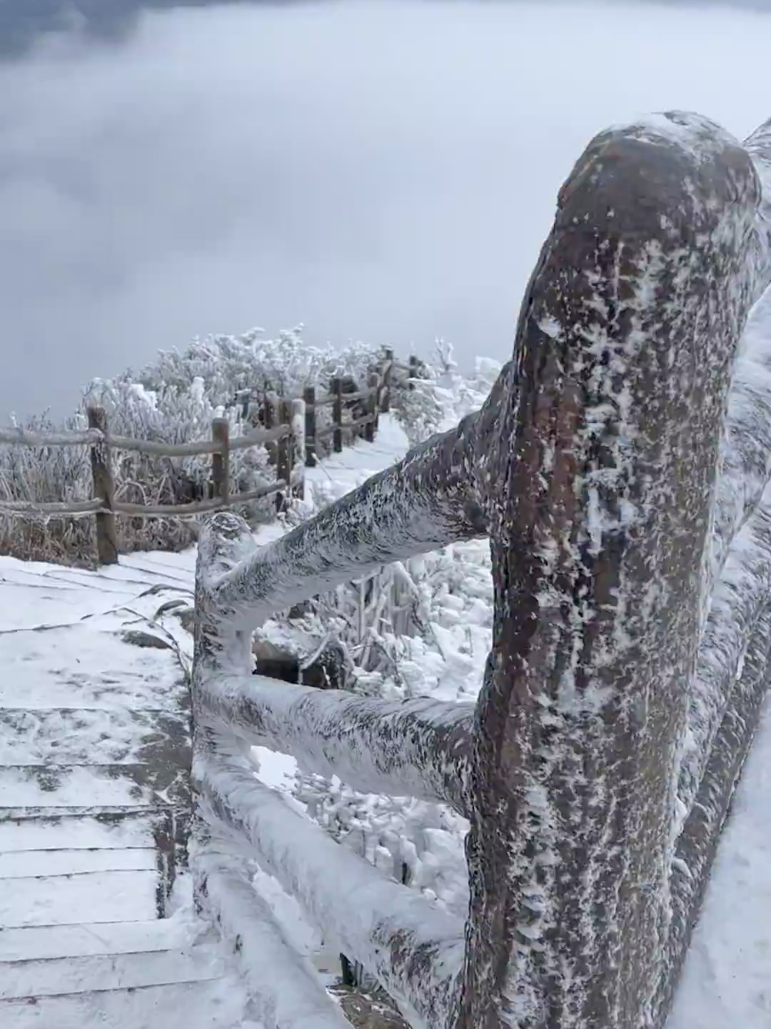 冰雪雾凇!整座山银装素裹,如同童话世界。