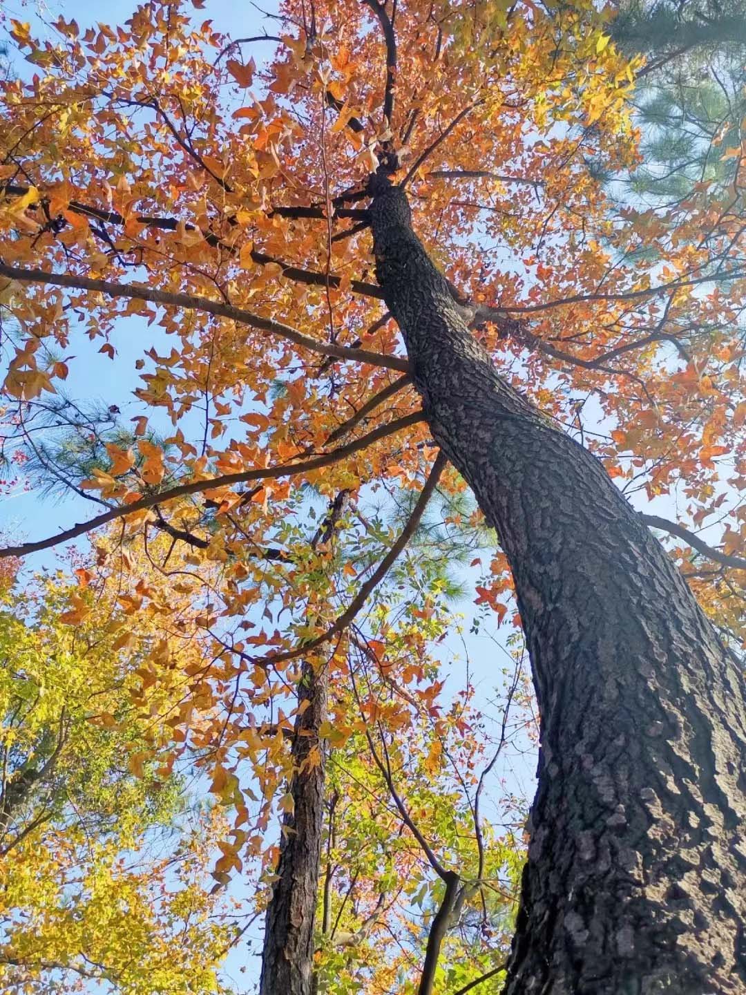 12:50 到达【石涧公园】,漫游小环线,挺拔的落羽杉披上了红装,宛如童话世界。漫步在水杉林亲水栈,享受小九寨的多彩风光