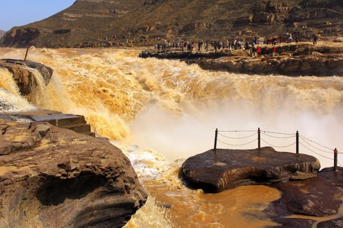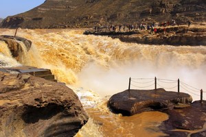 早餐后,我们前往黄河【壶口瀑布】,它是世界最大的黄色瀑布,中国第二大瀑布。以壶口瀑布为中心的风景区,集黄河峡谷、黄土高原、古塬村寨为一体,展现了黄河流域壮美的自然景观和丰富多彩的历史文化积淀。站在河边观瀑,游人莫不唱起“风在吼,马在叫,黄河在咆哮,黄河在咆哮……”这威武雄壮的歌曲。壶口瀑布分陕西、山西两侧,我们参观的是壶口瀑布陕西景区,陕西壶口地势较高,站在黄河之畔俯瞰,浑浊的黄河水翻滚着直泻沟底,弥漫的水雾中一弯彩虹时隐时现。游人争先恐后的用快门凝固壶口瀑布惊涛骇浪、一泻千里的壮观场面。资深摄影发烧友们会用慢门将壶口瀑布湍急的水流拍成一条条金色的绸缎,在这里你可以真正感受到“黄河之水天上来”的磅礴气势,早晚光线明暗对比明显,景色也更立体一些。