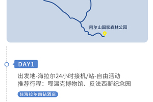 2. 阿尔山景区较大,我们甄选精华景点走完,根据实际情况可能会有先后顺序调换,行程时间仅供参考
