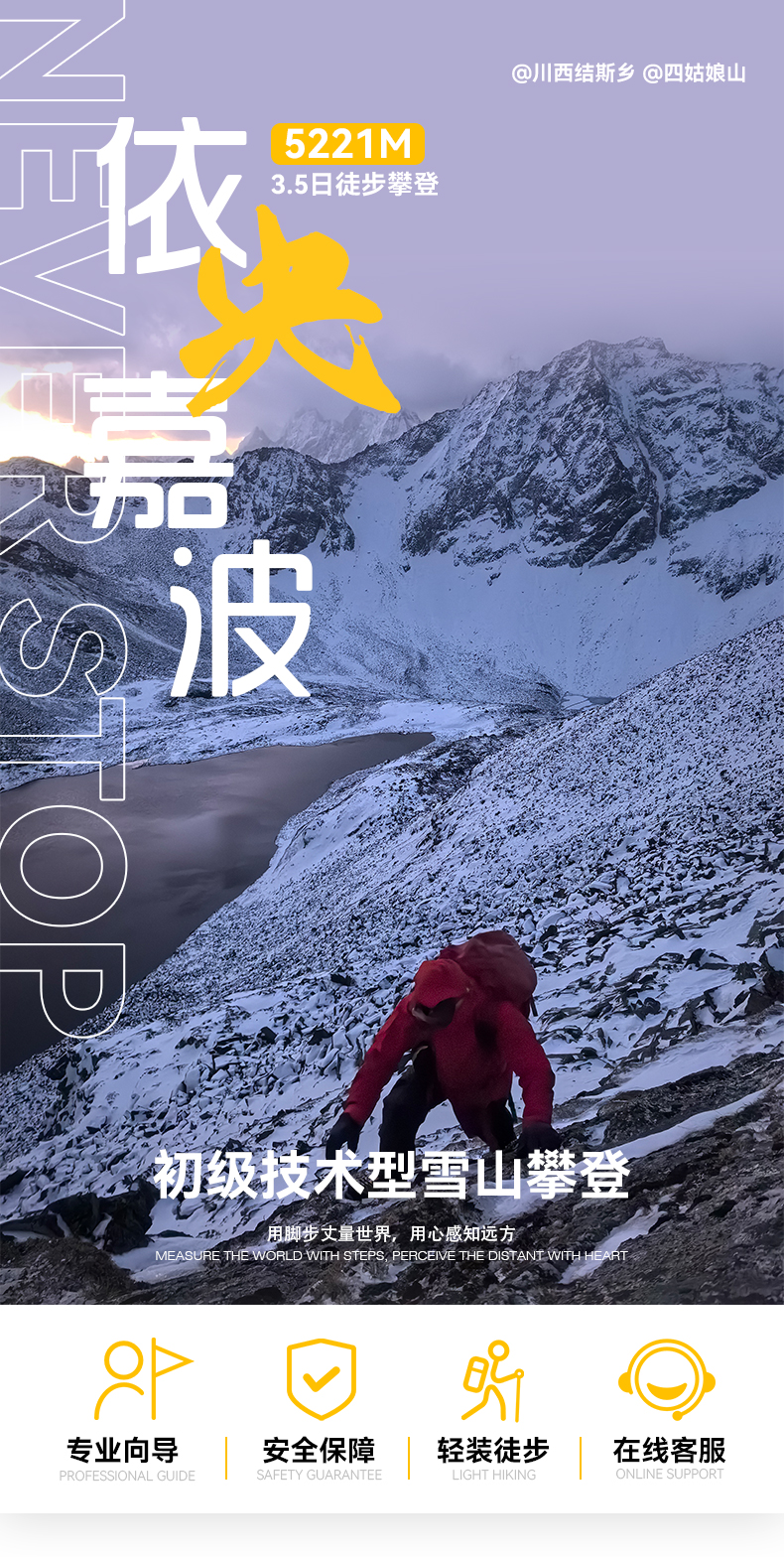 行程概览:今天是艰苦的一天,C1营地-依央嘉波峰顶只有约3km,但是爬升是在900米-1000米,强度较大,我们从凌晨三点左右(参考时间,具体以当团领队或者向导出发时间为准)出发,先是到达“雪山版的赛里木湖”——三海子,之后的路段以乱石堆为主,开始不停的向上爬山,第一技术路段海拔约4780米,第二技术路段海拔约4963米,在向导或者领队的带领之下,攻克这两个难点之后,就开始最后的冲顶一段。登山,是一个享受的过程,也是对身体的一个考验,只有到顶后才能体会“会当凌绝顶,一览众山小”的意境,不光是对精神层面的补充,更是对视觉层面的巨大冲击。享受过后,沿着山体的另一侧开始下山,直接到(三海子)湖边,开始享受这一刻三海子带给你的宁静!最后回到大二普大本营,到结斯乡酒店,梳洗一番,开启我们的庆功宴,也是对充实的一天进行分享和回味,再次庆祝大家登顶成功的喜悦!