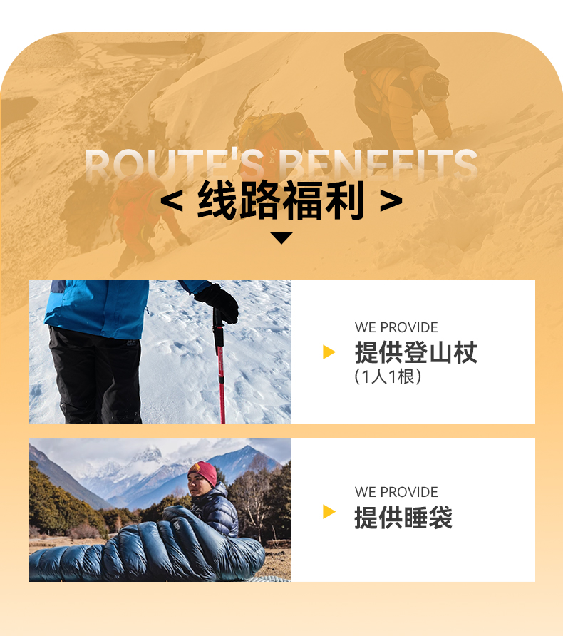 登山杖租用(免费租用1根) | 押金50元 (无损坏,完团全额退还) |