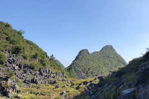 13:00 吃饱喝足,继续出发,穿越无人村落,进入喀斯特峰林之中。