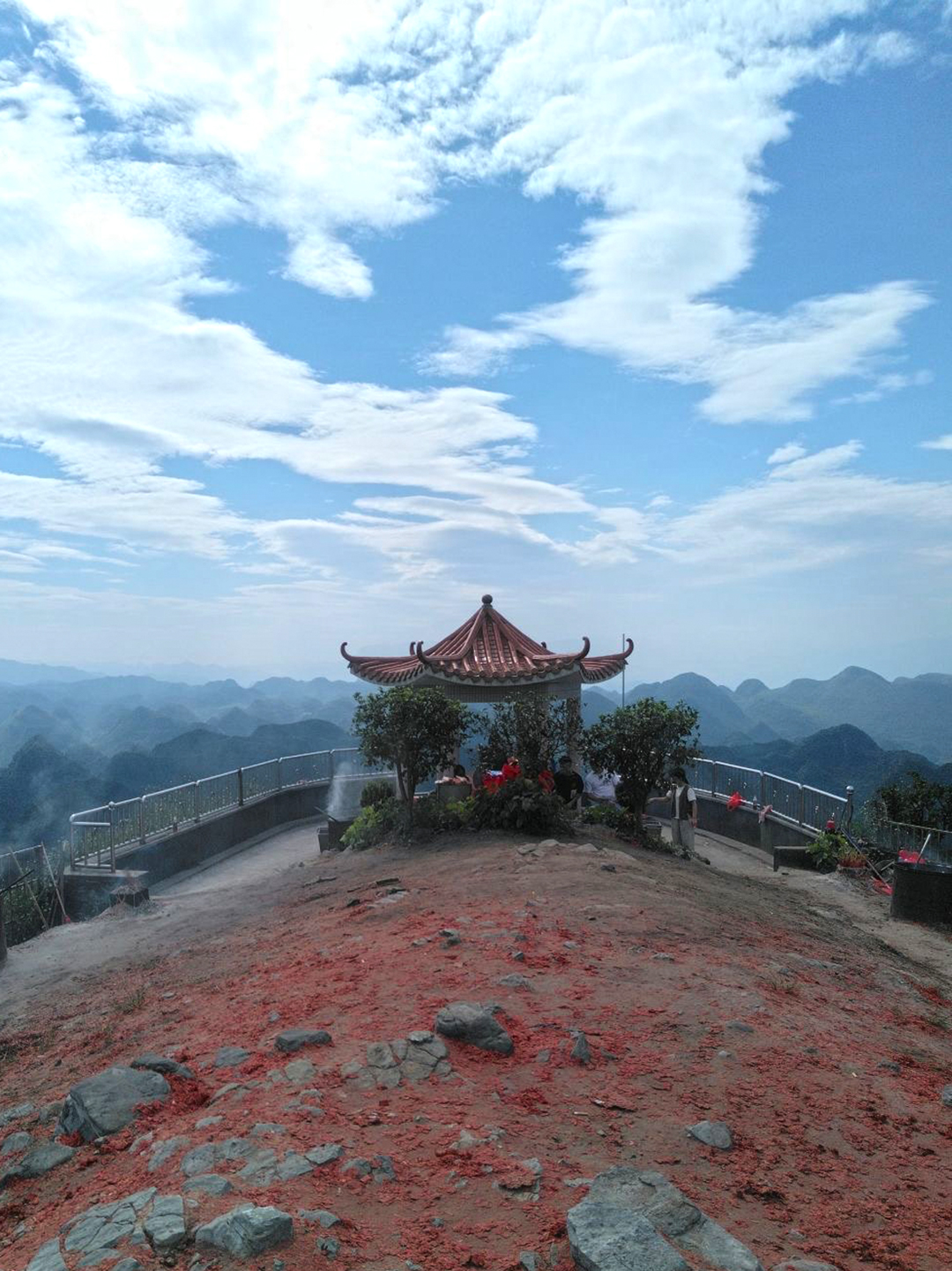 14:00-14:30打卡靘雾山仙娘庙,山顶欣赏喀斯特峰林。打卡完成后原路返回。