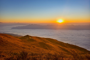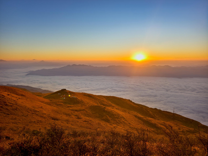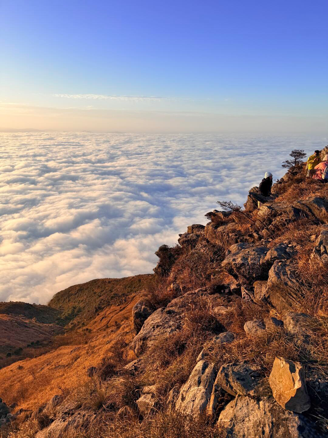 守一场瑶峰日出,才不算辜负这一夜奔赴。天边从鱼肚白渐染橘粉、绯红,霞光铺满天际,当第一缕金光刺破云层跃出峰峦,万丈光芒将云海染成鎏金。流云翻涌如浪,座座山峰化作云海孤岛,宛若仙境。脚下草甸被晨光镀上金边,春夏秋冬景致各异,随手一拍,都是无需滤镜的大片。