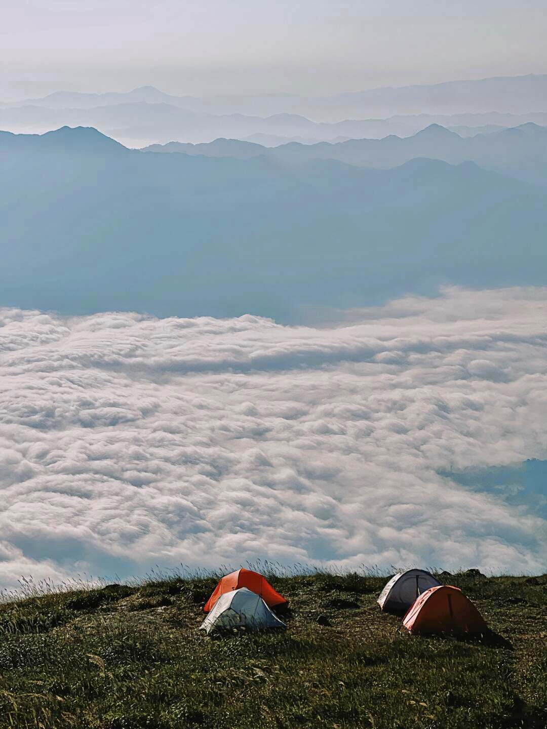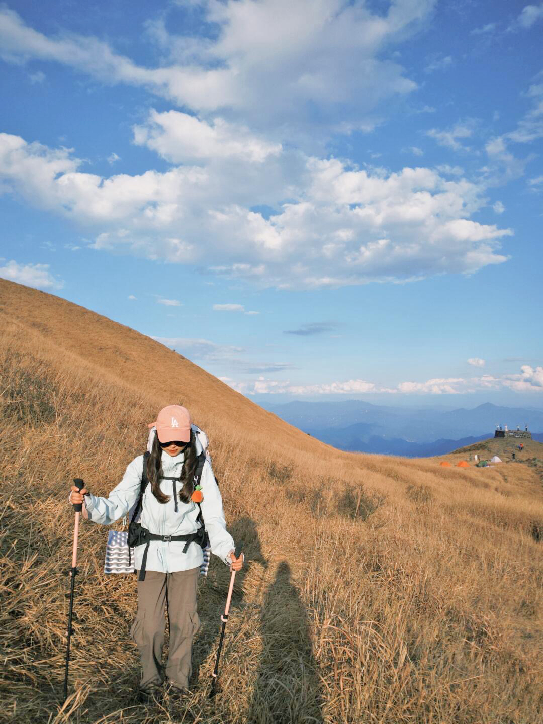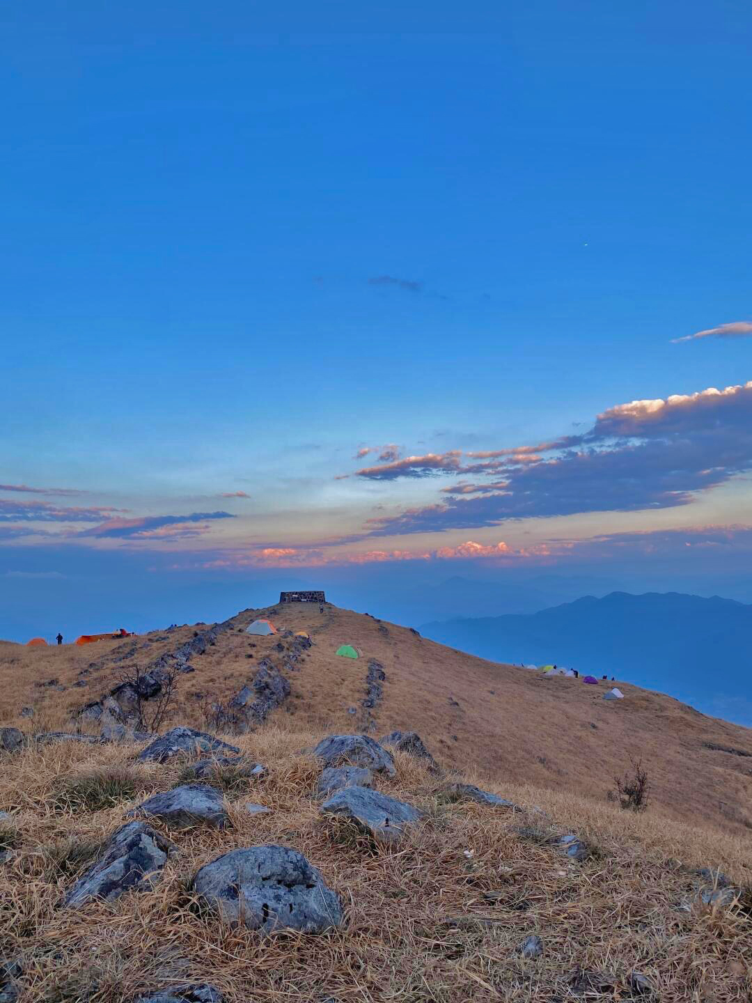 行至半山,地势豁然开朗,密林退去,一片缓坡草甸铺展开来。夜色中的草甸带着朦胧感,软叶蹭过脚踝,凉意瞬间驱散倦意。此刻抬眼便是满幕星河,银河横亘天际,星子亮得晃眼,驻足而立,偌大山野只剩自己与星光,静谧又浪漫。稍作休整,伴着裹挟山巅气息的晚风继续向上,远处山峦轮廓在夜色里若隐若现,如一幅写意水墨。