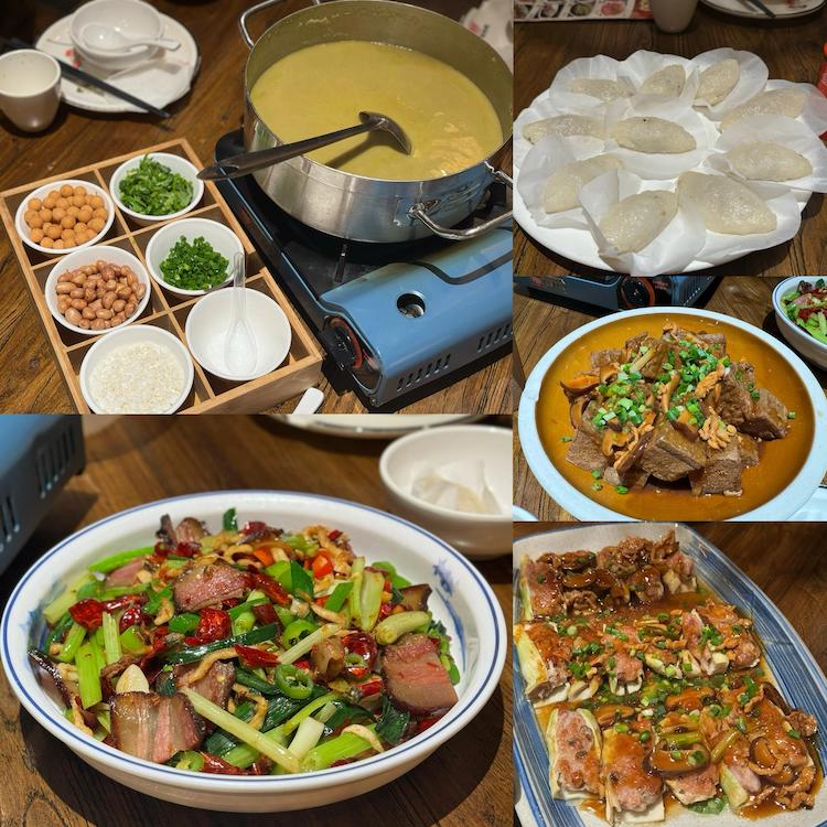 江永血鸭、布衣牛肉、白首乌炖鸡、三香玉兔、芋香腊肉、稻香排骨、香芋煎粉蒸肉、江永群香汇、糯香芋、素炒野菜、百合藕筋、凉拌青椒皮蛋