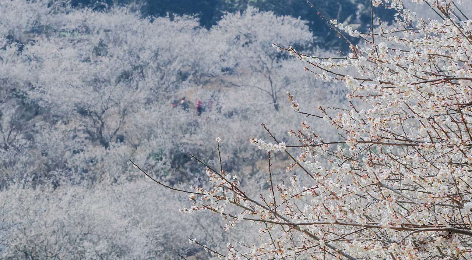 13:00 集合出发前往流溪香雪,一路上都有梅花盛开;漫步在漫山梅花世界里;记得穿好漂亮的衣服哦。可登上小山顶拍摄山间的大片原生态梅花,也可徜徉于流溪香雪的梅花世界里;