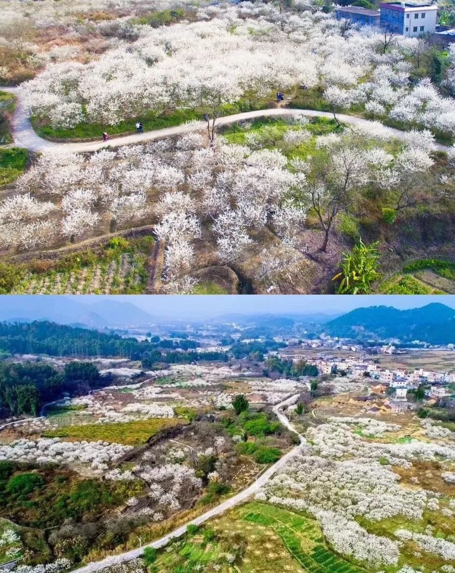 冬阳如夏的南粤人,大都不能北上二万五千里去雪里寻踪,只能昂首北望空叹息。而充满想象的人类,总是能创造满足欲望的神奇。 雪白的李花,曾被无数诗人写进诗中,歌颂赞扬她的纯白无瑕。