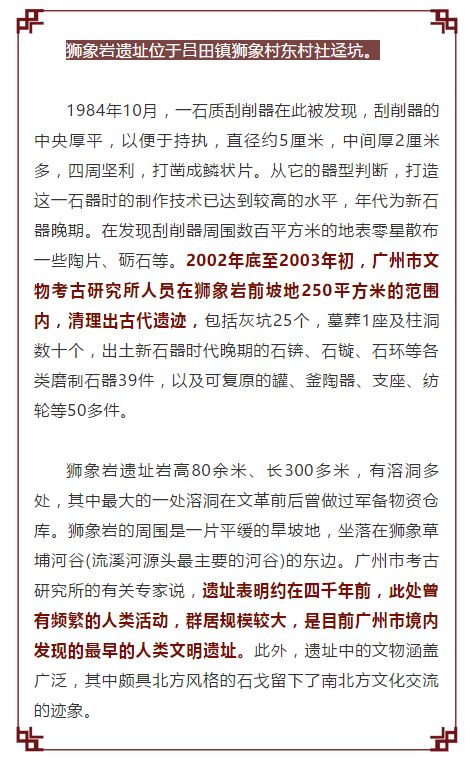 14:30狮象岩遗址位于吕田镇狮象村狮象岩山一带,分别散落在白庙沟、狮象岩、社迳坑等地,是新石器晚期文化遗址。