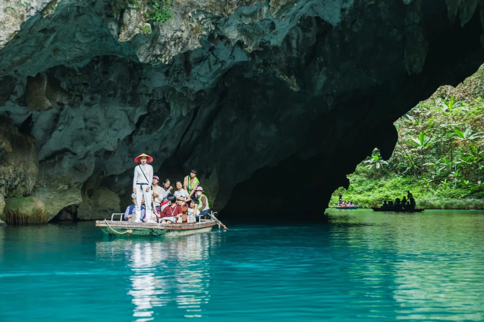 低头俯瞰,脚下是暗流涌动的地下河,清澈的河水倒映上方的钟乳石,虚实交错间更添几分神秘与幽邃。洞中恒温16℃左右,能让你在大自然的空调房中卸下一身暑气。