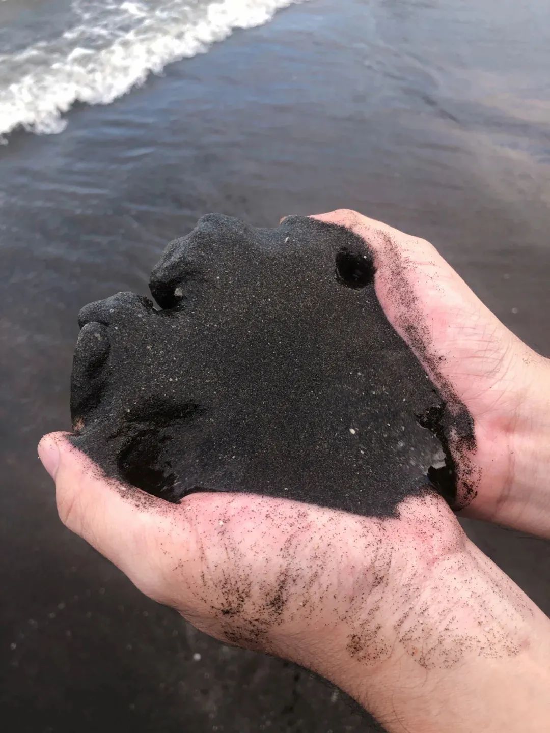 黑质地的沙粒细腻、柔软,沙体内含多种矿物质