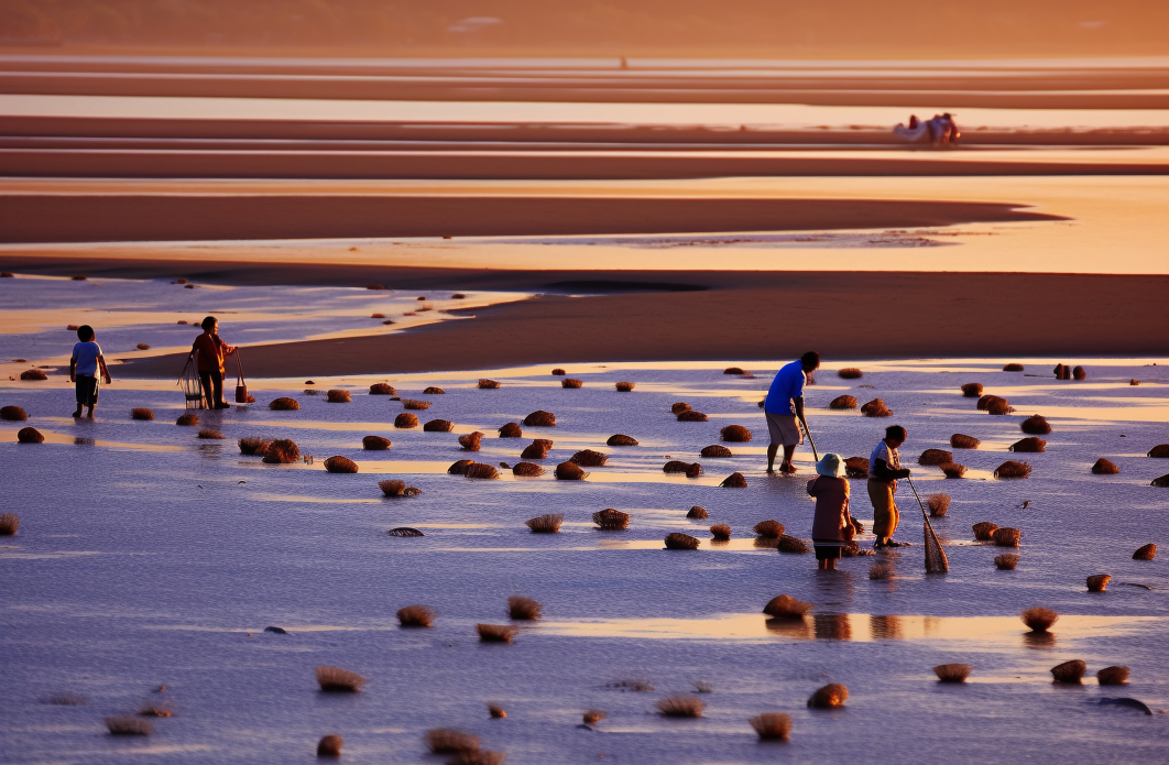 赶海的区域主要在潮间带,海滩上涨潮时淹没、落潮时裸露的区域;礁石岩缝众多,可供虾蟹藏身;贝类们能用足丝黏附在礁石上,或是钻入泥沙下。这些都是容易有收获的好地方。